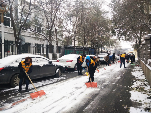 沈陽市11月30日早上6點開始出現降雪,雪勢逐漸加大,給行人及車輛交通帶來很大麻煩。以雪為令,雪停以后集團員工立即投入到除雪奮戰之中。由于準備充分,措施得當,除雪防滑工作進展順利,確保了大家的安全出行和道路的暢通。
