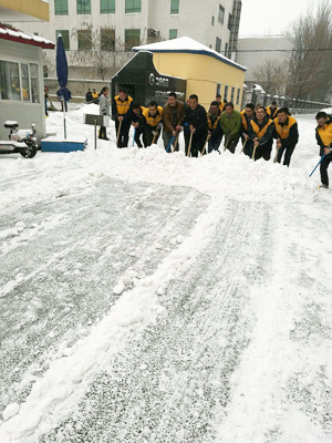 同事們不畏嚴寒、積極主動、相互配合,自發組成團隊,喊著“一二”的口號齊心協力,你鏟我掃,盡管大家的臉都凍得通紅通紅,但這一切絲毫沒有影響大家的熱情和工作效率,在歡聲笑語中掃出了干凈的園區和暢通的大道。