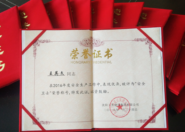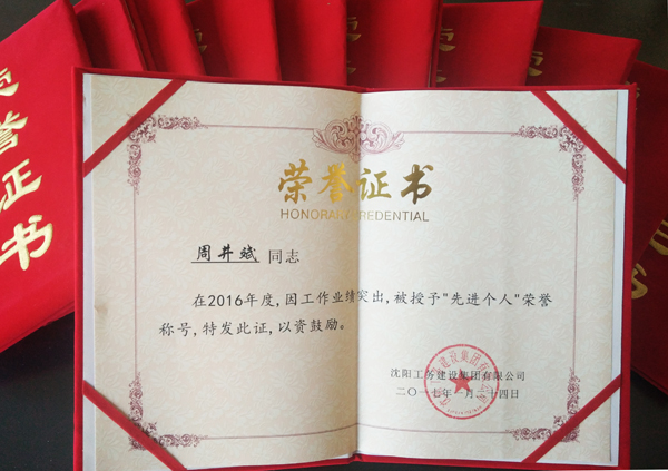 工務集團2016年度員工(部門)獲得榮譽稱號、獎勵情況